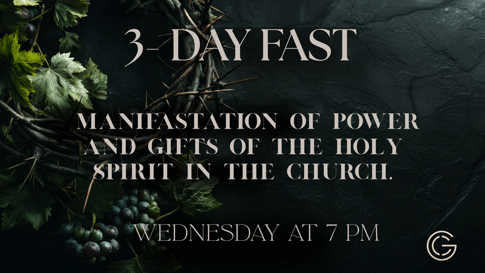 Please join us this week for a Prayer and Fast. Monday - 7PM Tuesday - 7PM Wednesday - 7PM Thursday - 7PM Friday - 7PM Saturday - NO SERVICE Sunday - 10AM